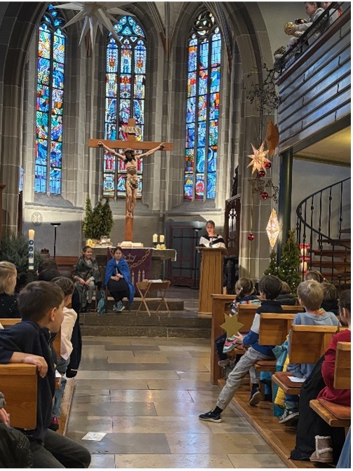 Voller Freude auf die Ferien und gespannt, wie das Weihnachtstheater wird, sind die Schüler, am letzten Schultag, in die evangelische Kirche aufgebrochen.